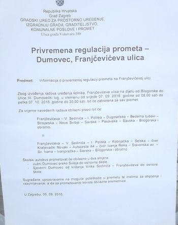 Privremena regulacija prometa u Dumovcu